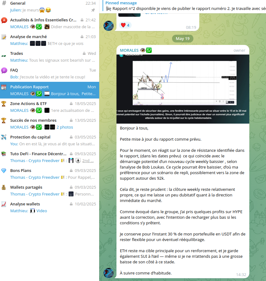 J’ai également beaucoup appris sur ce groupe donc merci infiniment les gars ! Merci pour vos analyses qui permettent de comprendre les marchés, vos rapports hebdomadaires toujours fiables, votre soutien, vos partages de connaissances et votre aide d’une manière générale 😊 Ce groupe m’a vraiment permis d’investir intelligemment, sans FOMO et de trouver d’excellents bons points d’entrées !